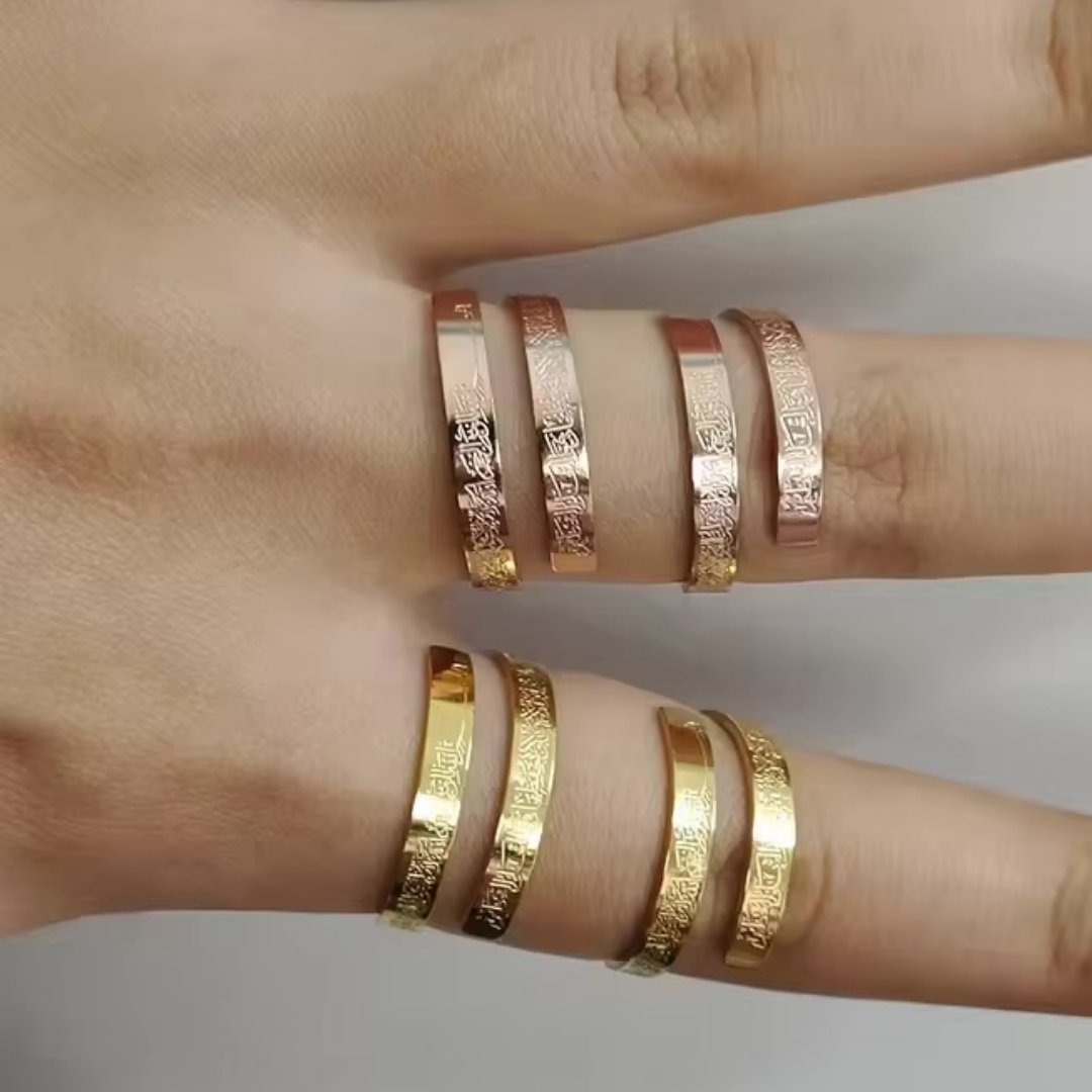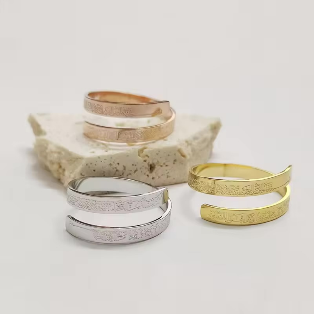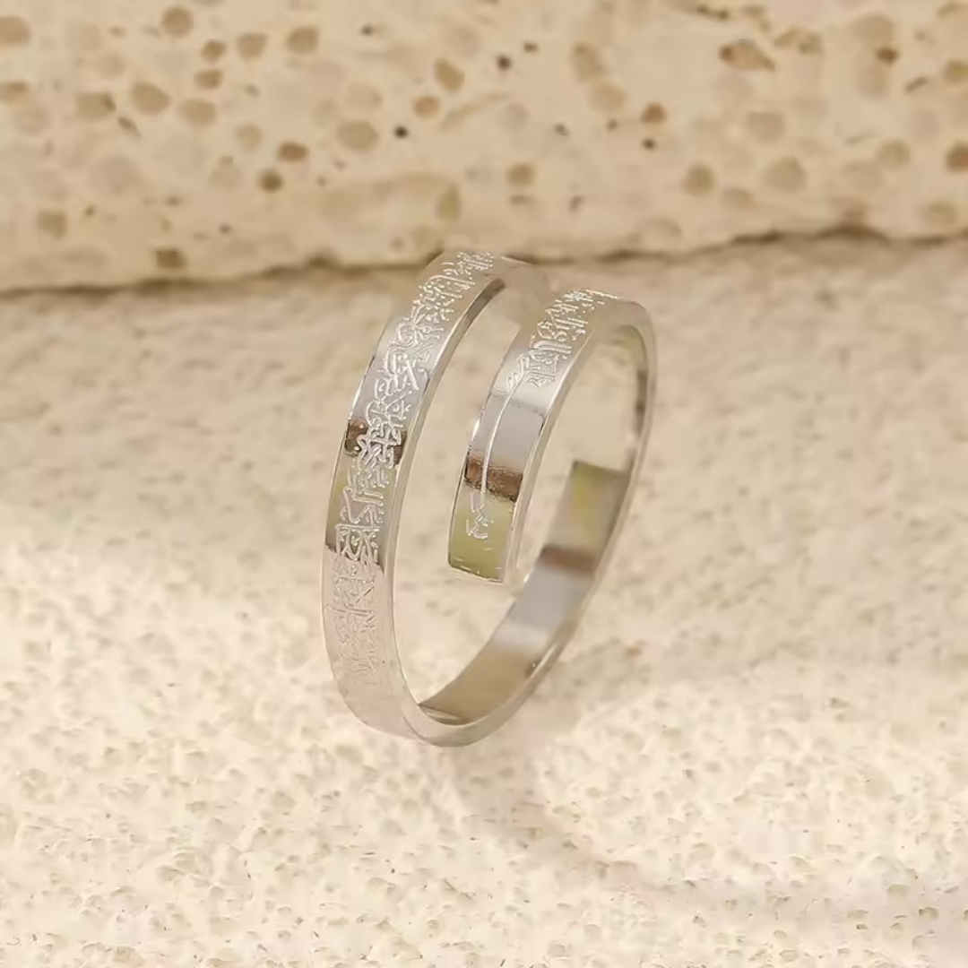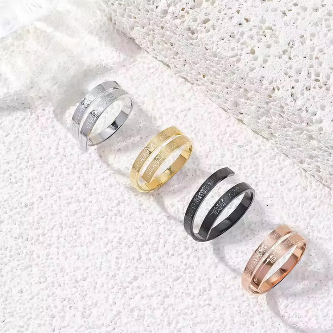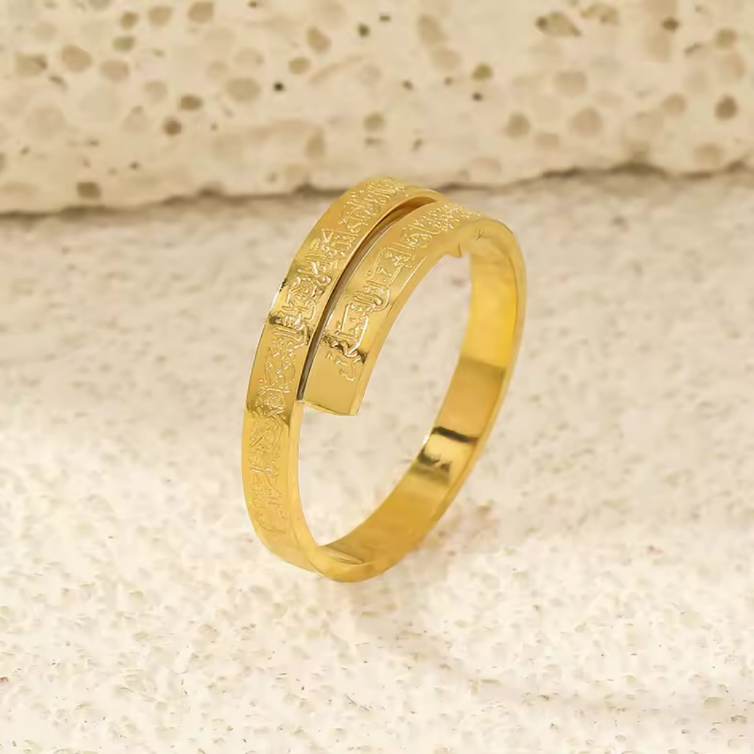 Üzerinde Ayet-El Kürsi'nin yer aldığı bu özel tasarım yüzük, size her an Allah'ı hatırlatmak ve O'nun koruyuculuğuna sığınma bilincini pekiştirmek için bir vesiledir.